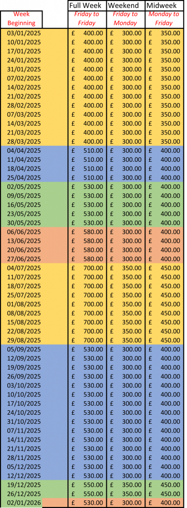2025 Rates Bookings are from Friday to Friday Weekends / mid weeks available contact owners to enquire.