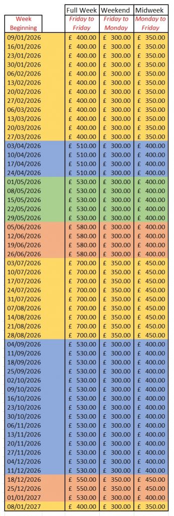 2026 Rates Bookings are from Friday to Friday Weekends / mid weeks available contact owners to enquire.