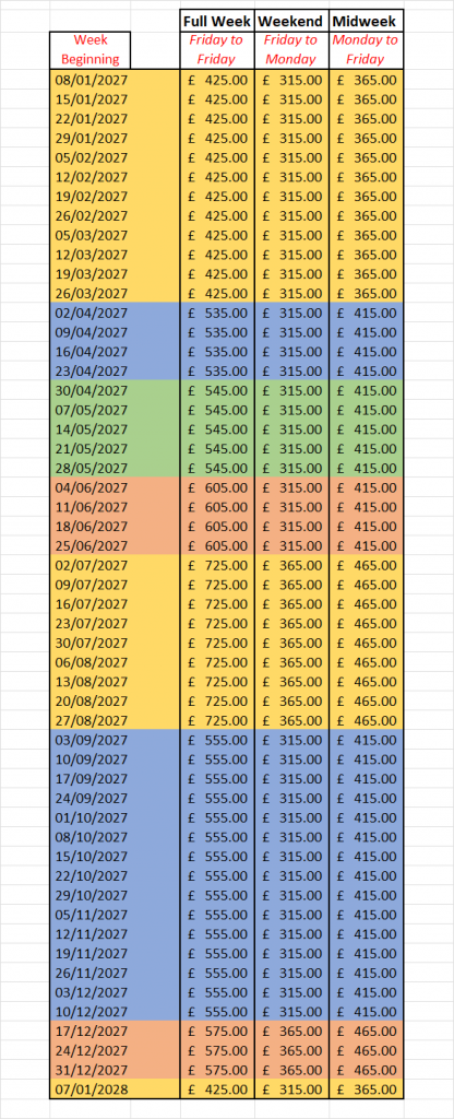 2027 Rates Bookings are from Friday to Friday Weekends / mid weeks available contact owners to enquire.